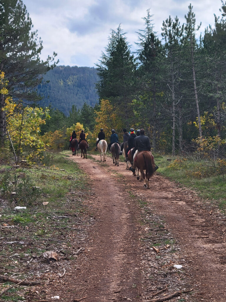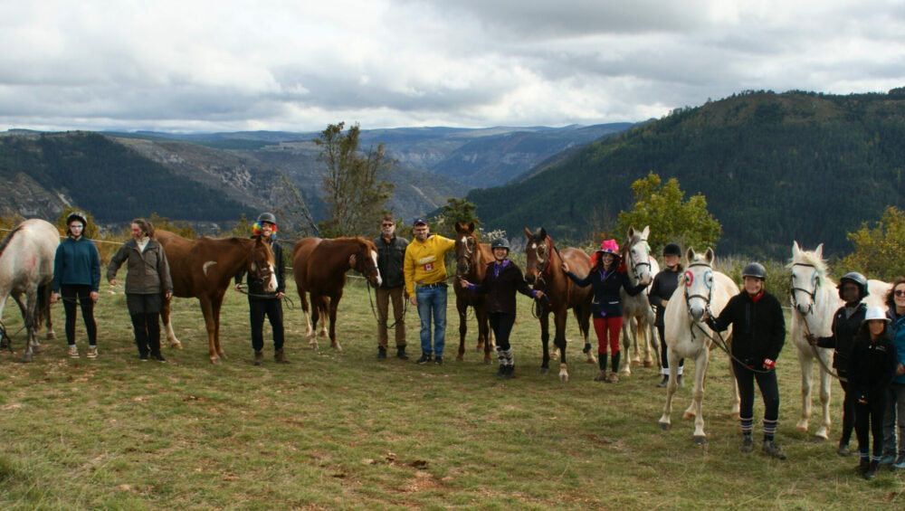 Sur le chemin, les équitants chantent, font des jeux d’équilibre et profitent du paysage avant de revenir au Lieu de Vie où ils soignent leurs chevaux avant de les ramener au pré.