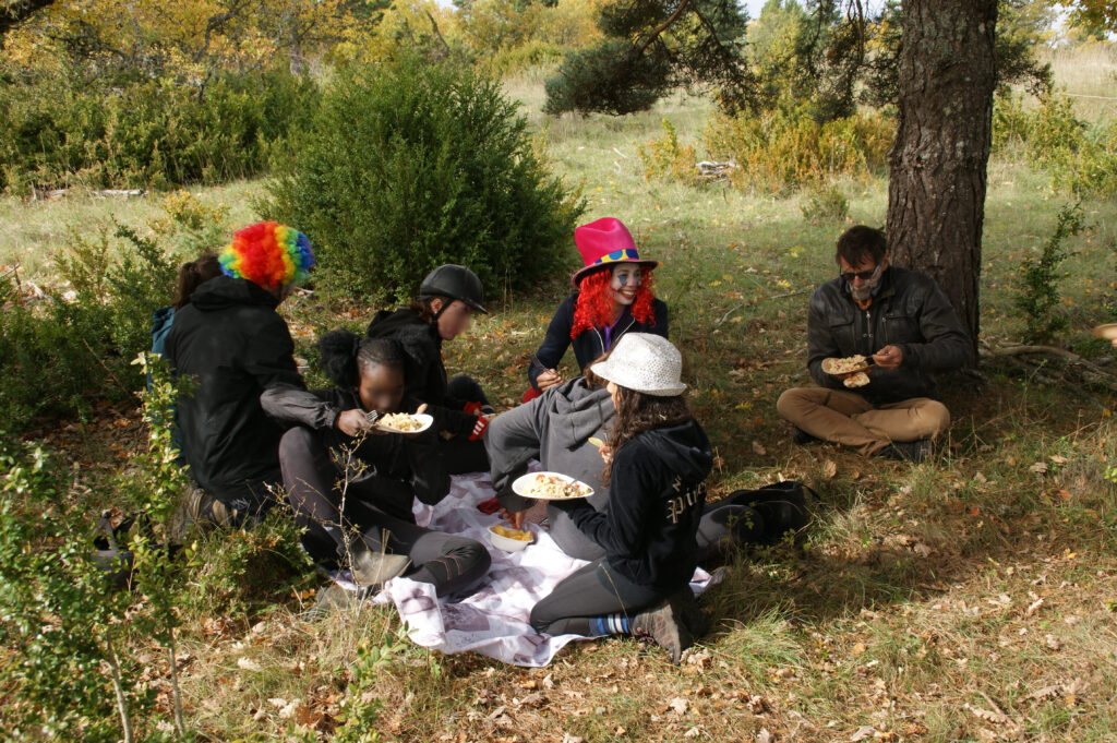 Le 31 octobre, après les séances d’équitation organisées durant toute la période de vacances, nous organisons une randonnée équestre pour Halloween. L’expérience est d’autant plus valorisante : les jeunes participent autant à son organisation qu’à la randonnée en elle-même.