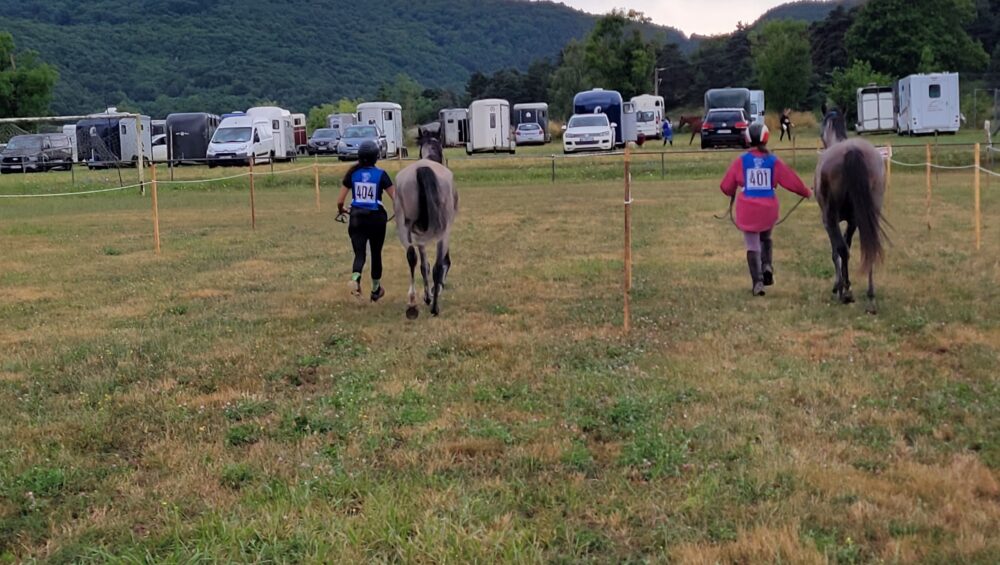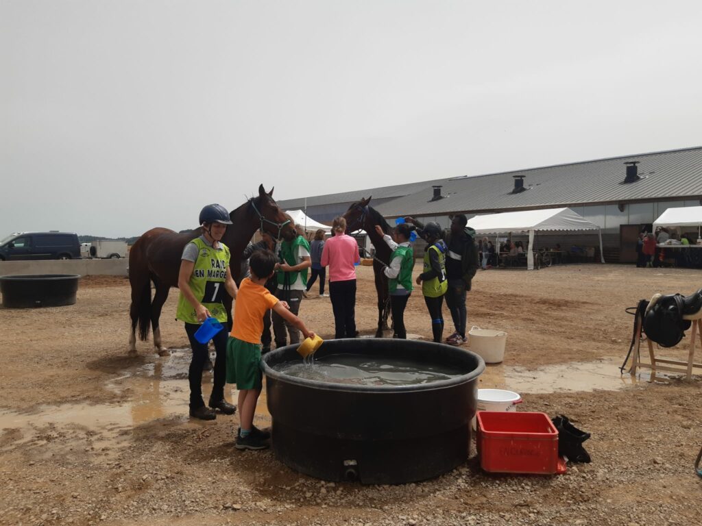 Au matin, tout s’accélère… Après un petit déjeuner sur le pouce, on court chercher les dossards et carnets de courses. Les cavalières se préparent, les jeunes aident à brosser les chevaux, on va sur la ligne de départ et c’est parti ! A chaque point d’assistance et lors des contrôles vétérinaires, sous la supervision et les consignes de JP, Cristina et des cavalières, nous arrosons les chevaux, prenons leurs cardio et encourageons les cavalières !