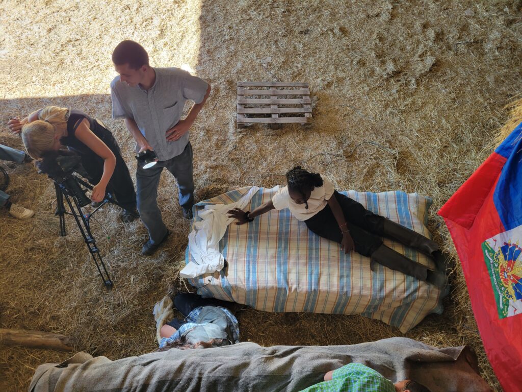 Entre les allers-retours des uns et des autres, de petits groupes s’affairent à tour de rôle à la réalisation d’un film.