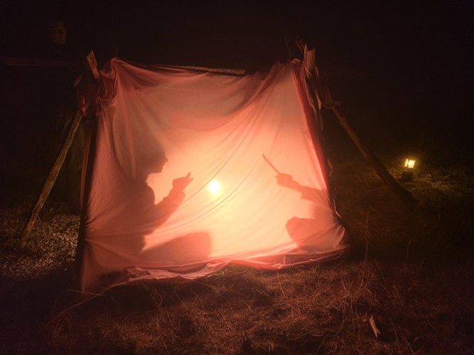 Dans le cadre du tournage, trois jeunes ont expérimentés une nuit en bivouac sur le Causse, non loin de la maison. Au programme : construction d’une cabane, préparation du repas et veillée ‘ombres chinoises’ ! Sans compter le tournage de certaines scènes évidemment…
