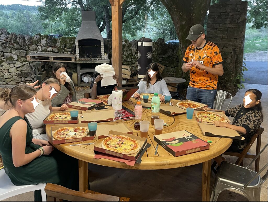 Pour fêter la fin du tournage, Iris et Noé ont organisé une soirée de clôture. Au programme : pizzas et veillée ‘Bingo’ !!!!